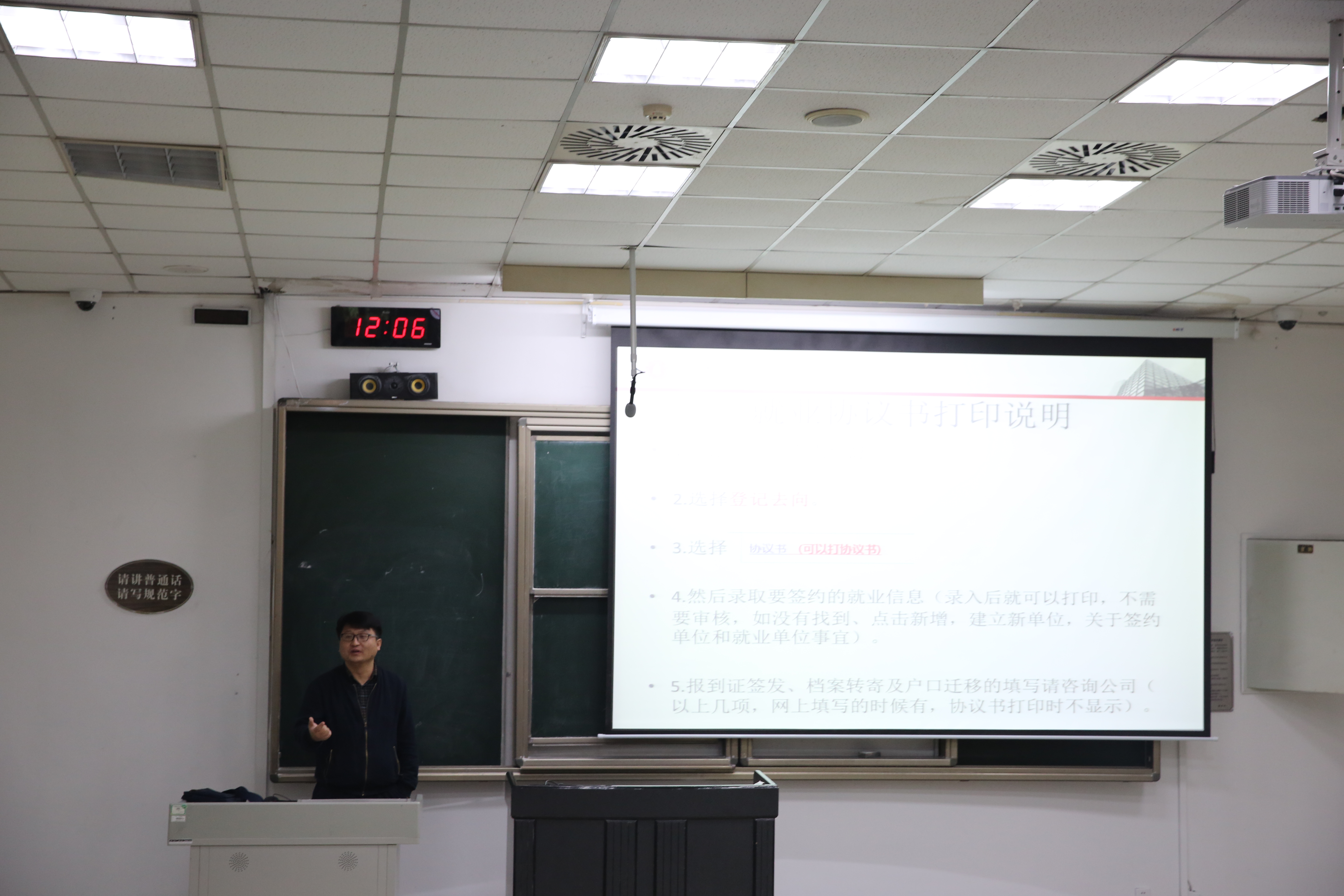 首先,李老师对同学们在就业推荐表和协议书填写方面遇到的问题进行了详细讲解,逐条说明了填写内容、盖章签字流程,提醒大家慎重打印三方协议。