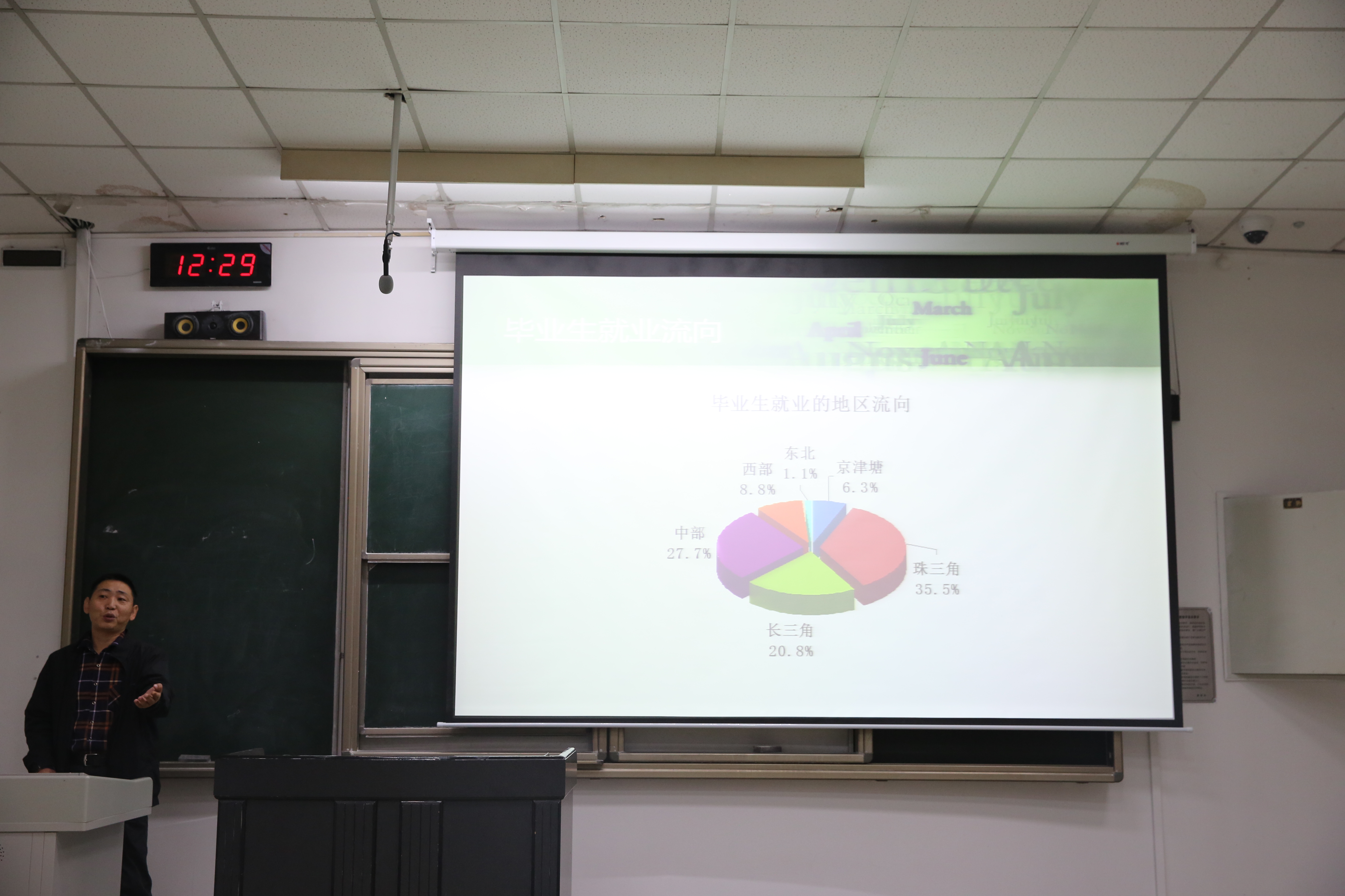 最后,陈书记为同学们进行了就业现状分析。结合当前社会经济发展大环境和国家经济状况,陈书记分享了近几年来毕业生就业数据和概况,分析了就业压力。同时根据公司和专业的特点,陈书记进行了针对性分析和讲解,他列举了很多历年成功就业和就业不理想的例子,建议同学们端正就业态度,切实地向同学们传递了就业经验和教训。陈书记希望同学们的选择不仅适合自己而且适合国家的发展需求。