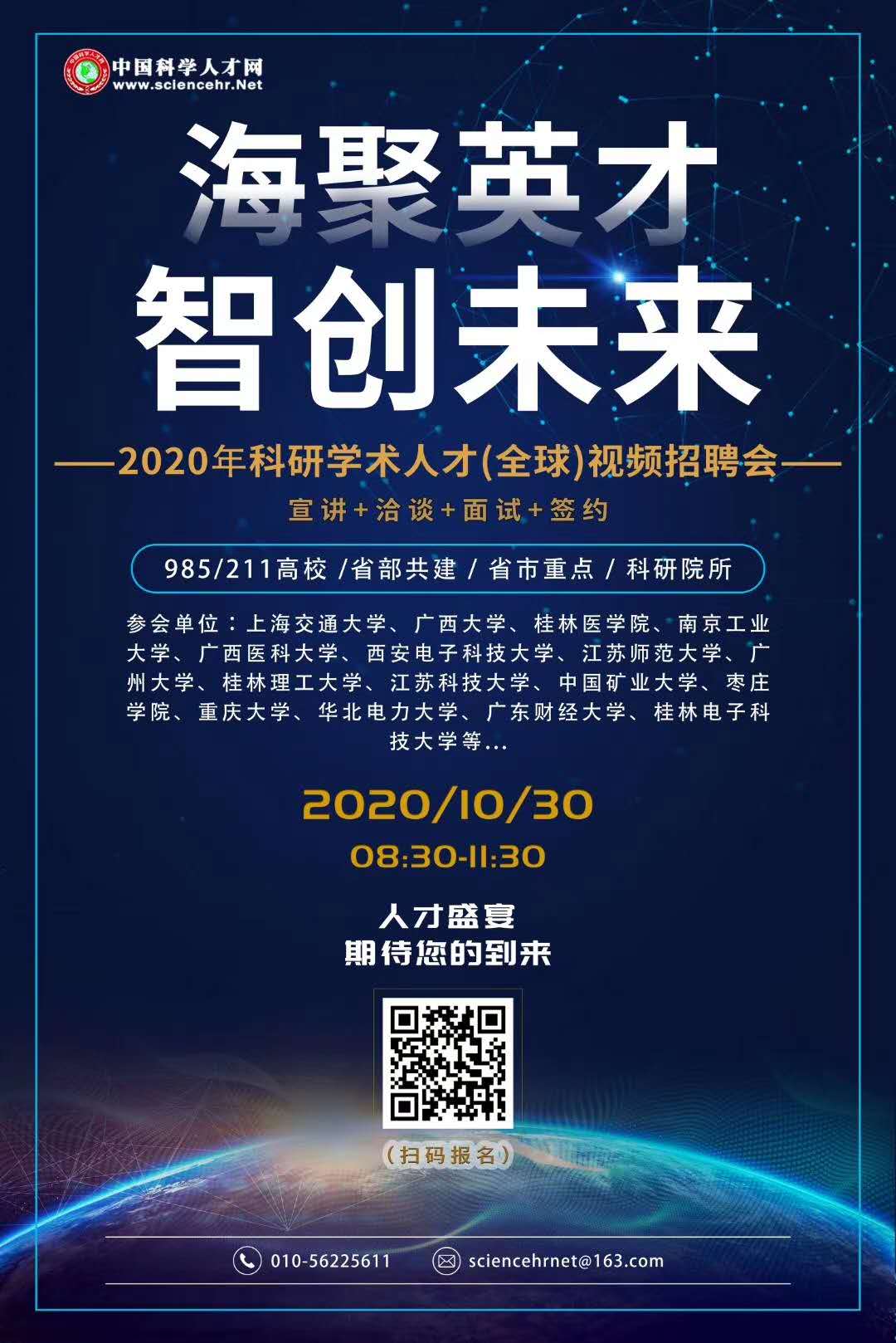 10月30日8:30汇集国内众多高校科研学术人才视频招聘会(详见附件)