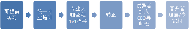 你可以享受CEO亲临授课,成为企业管理层重点培养人才之一,公司将安排你到各个岗位实训磨练,考核通过即可直接晋升为公司管理层!
