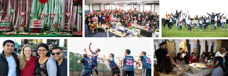 我们超乎你想象的简单:+平等 开放 活力 +定期团建 +各类社团 +与来自不同国籍同事零距离交流和互动。