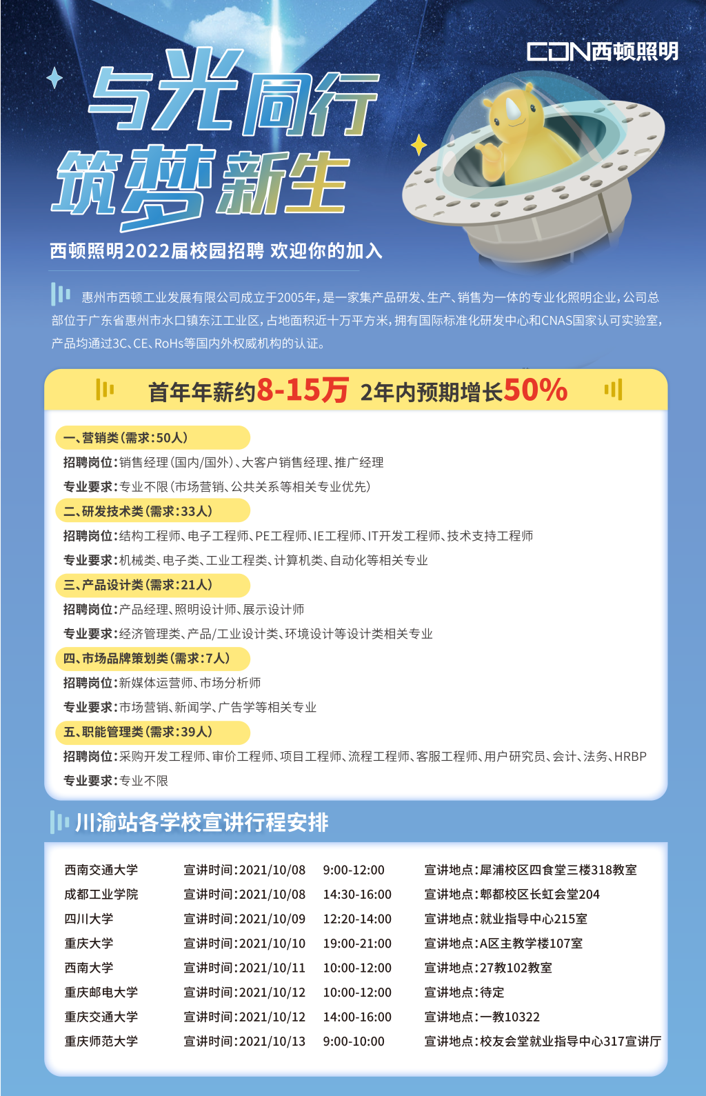 西顿照明---太阳网集团tcy8722站即将开始专场招聘会等你来!年薪约8-15万 免费吃住,每年至少一次调薪机会;“狮”系列发展路径,专人带教,各种学习机会、旅游、体检等多项福利【网申链接】:https://www.cdn.cc/CampusRecruitment/ (一键式投递)【投递邮箱】:cdnhr@cdn-lighting.com【公司官网】:www.cdn.cc