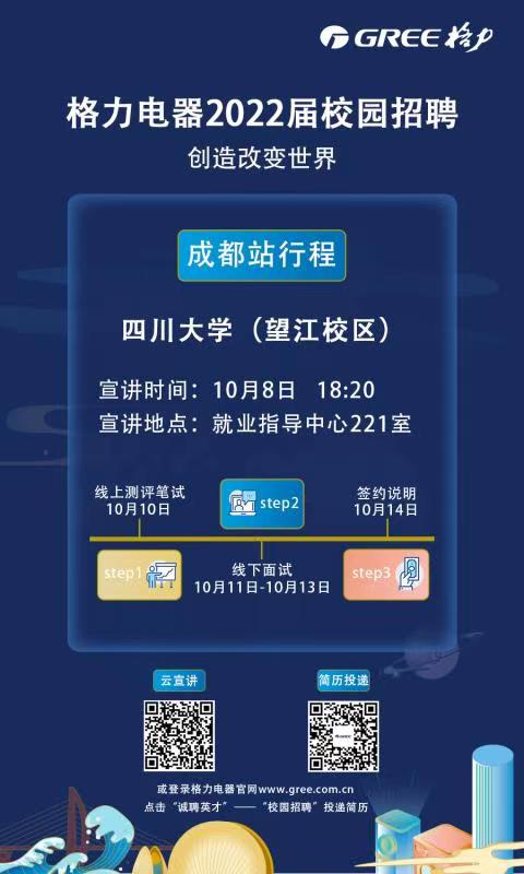 微信关注“格力电器招聘”公众号,点击校园招聘,了解更多岗位信息,投递你的心仪岗位