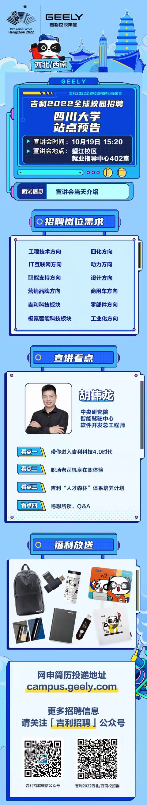 10月19日15:20就业中心402 吉利集团2022校园招聘宣讲会