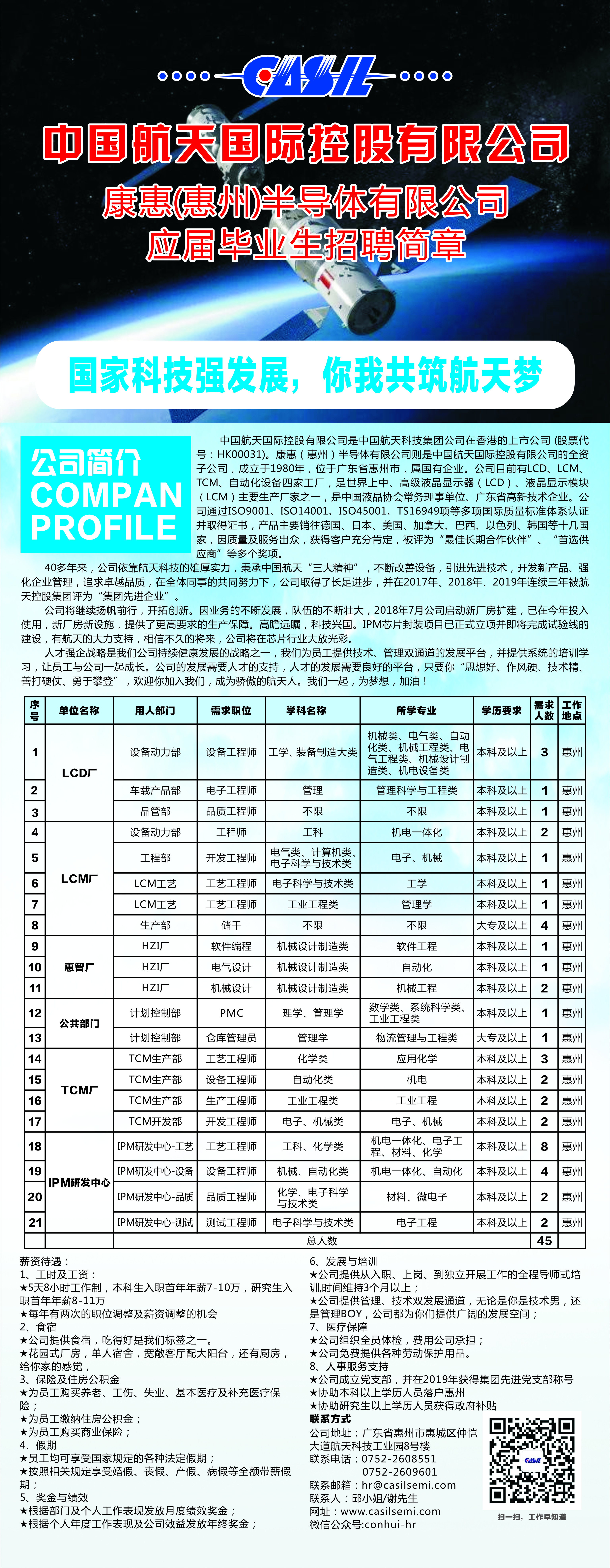 粤港澳大湾区·央企校招,中国航天科技集团---康惠(惠州)半导体有限公司欢迎您!