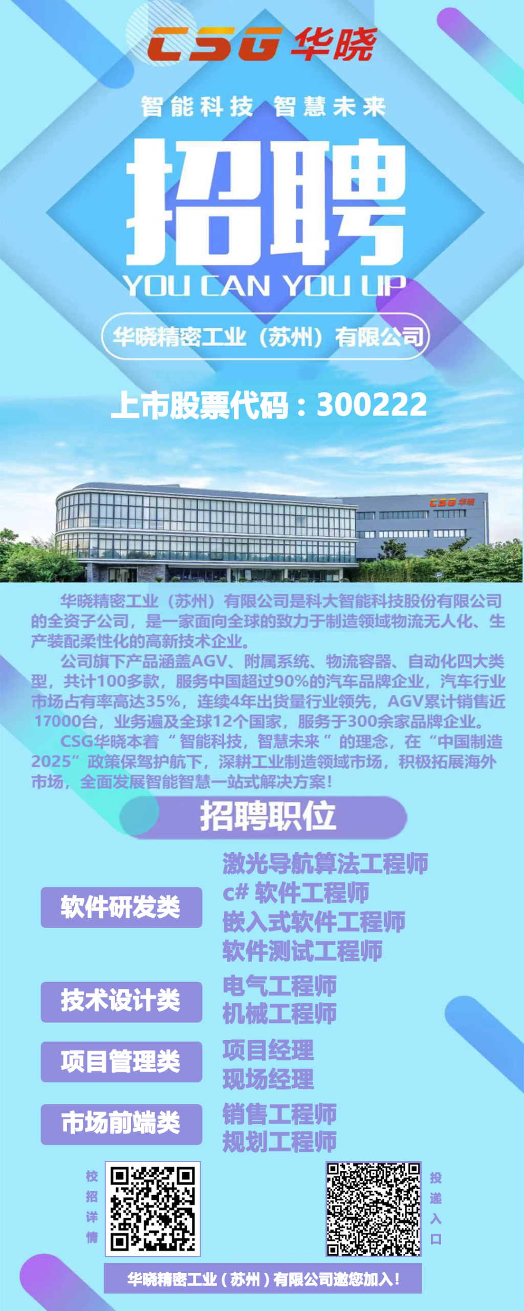 华晓精密工业(苏州)2022届太阳网集团tcy8722校园招聘火热进行中!空中宣讲时间:10月28日 上午10:00点击链接入会 https://meeting.tencent.com/dm/QSHiuN5R3oQD或腾讯会议→加入会议→输入会议 ID:542 498 555️职能、技术岗位等14个岗位需求,诚邀同学们前来应聘️核心技术类岗位年薪可达20W+人事电话/微信:17596540824