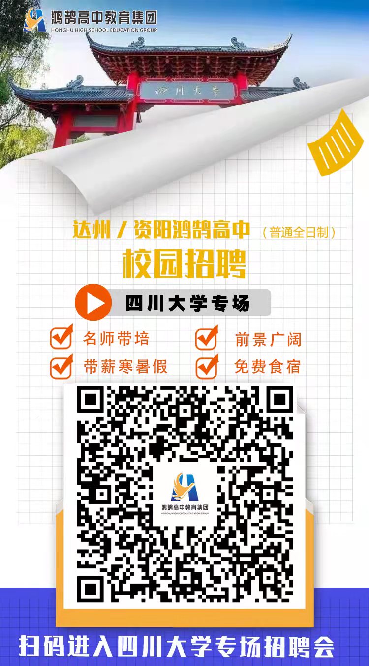 达州/资阳鸿鹄高中(普通全日制)校园招聘,招聘高中老师,需要语文,数学,英语,生物,物理,化学,体育相关专业毕业生,招收研究生、优秀本科生。