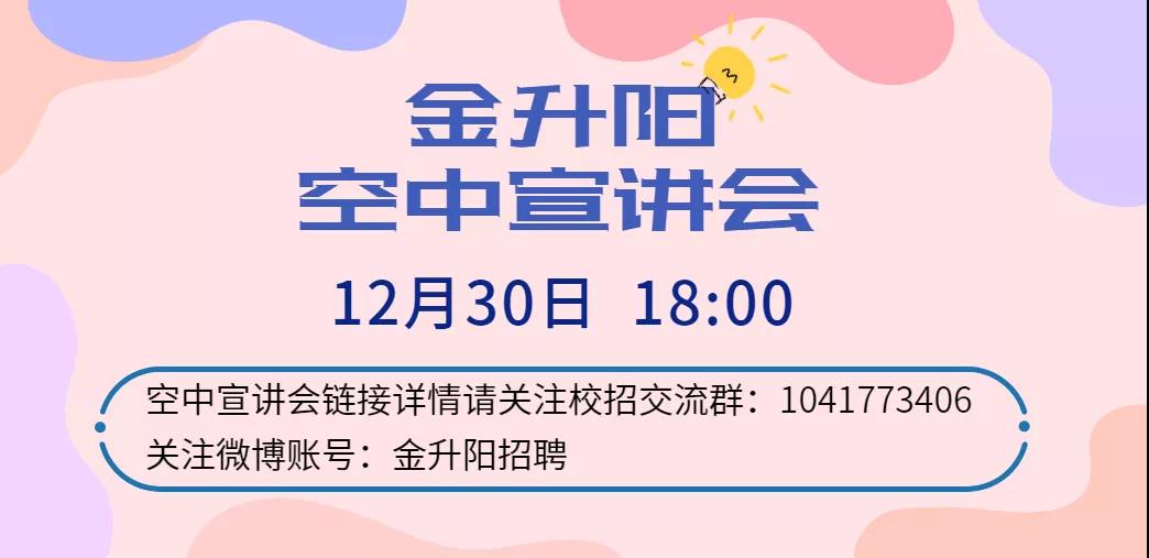 预告:12月30日(明天)空中宣讲会即将来袭,敬请期待,可关注“金升阳招聘”微博提前了解~