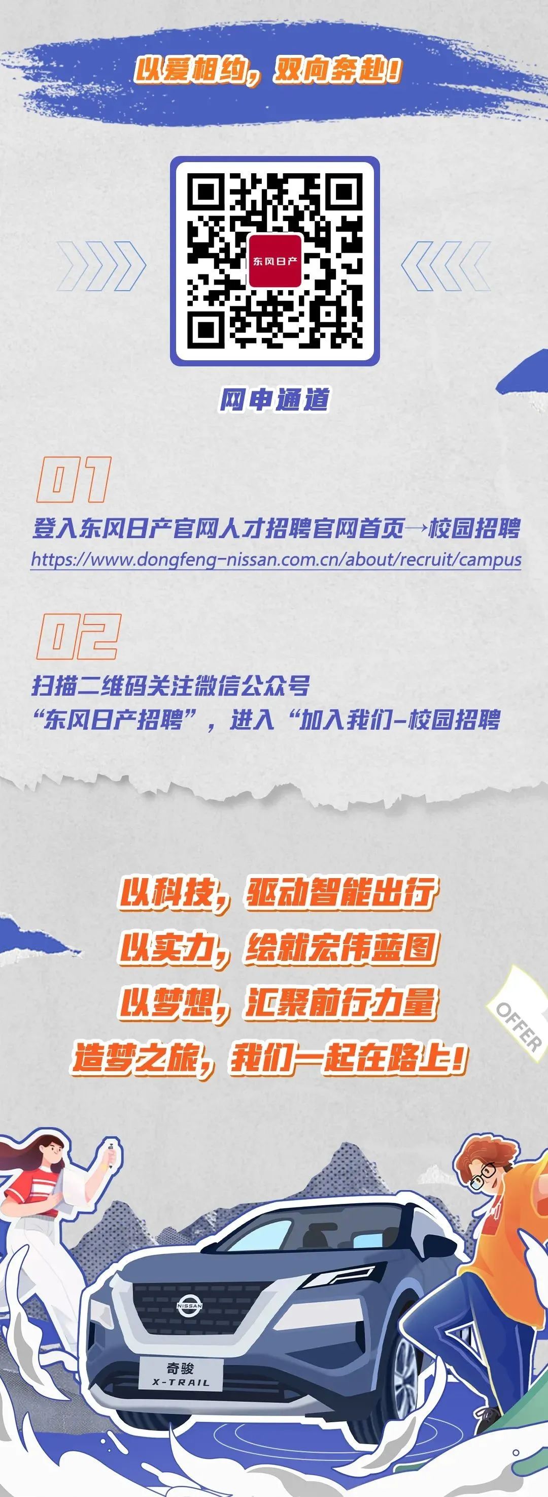 东风日产2022春招空中宣讲会将于3月9日(明天)晚上19点正式上线啦!!全面解读2022校招流程、岗位需求、应聘要求,更有丰富神秘的礼品在等你!加入东风日产,广阔天地,未来快意驰骋,即刻启程,共赴造梦之旅!请锁定空宣链接:https://xjh.zhaopin.com/show/7422我们相约周三晚上19点!欢迎网申:https://www.dongfeng-nissan.com.cn/about/recruit/campus