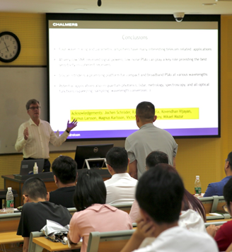 讲座中,Andrekson教授详细介绍了超低噪声相位敏感光放大器的原理和应用,与传统的掺铒光纤放大器(EDFA)相比,这种新型放大器在降低噪声和提高传输效率方面具有明显优势。他通过精确控制泵浦光和信号光之间的相位关系,展示了如何实现信号光的高效放大和噪声的大幅降低。
