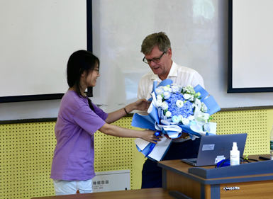 活动最后,研分会代表向Andrekson教授献上鲜花,以示感谢。随后,与会师生与教授合影留念,记录下这一学术交流的宝贵时刻。