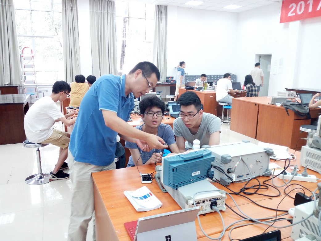 本次赛前培训共有来自公司船模协会、电子竞赛协会、电磁智能车协会等二十余个学术型社团的通过选拔的同学参加,赛前培训主要从双向DC-DC变换器、简易数字示波器、承载平台平衡调整系统以及增益可控视频放大器等几个方面进行,通过选拔的同学,三人为一组,以团队的方式进行赛前培训。