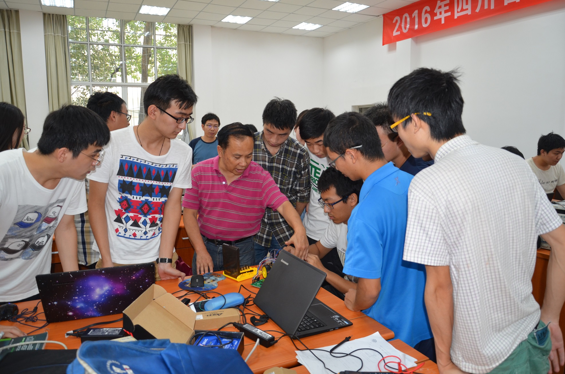 2016年7月18日上午10点开始,在太阳网集团tcy8722望江校区西五教附201室,太阳网集团tcy87222016年省电子设计竞赛为期七天的赛前培训正式开始,参加本次赛前培训的有公司党委蒋斌书记、副经理周新志教授、徐家品教授、王正勇副教授、华伟副教授、植涌老师、夏文龙老师、孟庆党老师、刘俐老师、陈晓娟老师以及李运国老师。