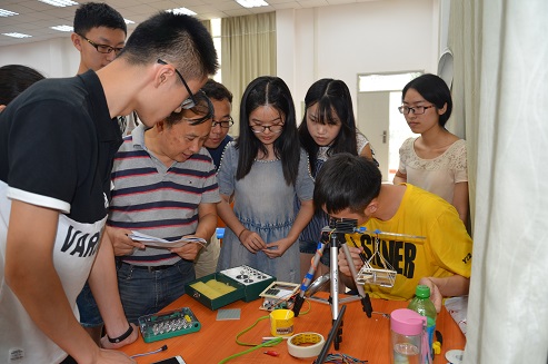 参加本次校内测试的共有来自公司船模协会、电子竞赛协会等二十余个学术型社团的通过7月16日选拔的同学,测试主要根据省电子设计竞赛的四个题目要求进行,省电子设计竞赛的题目分别为降压型直流开关稳压电源、自动循迹小车、脉冲信号参数测量仪、简易电子秤等四个题目,测试老师分别根据题目的要求,对参赛队伍完成的作品逐一进行了测试。