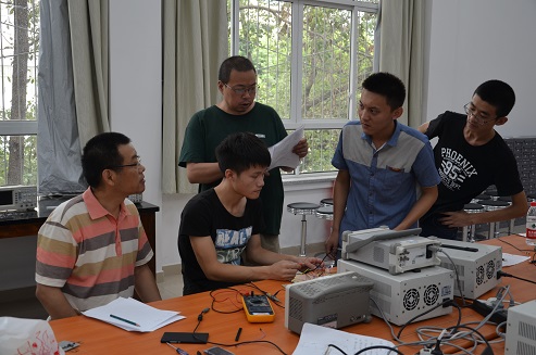 2016年7月29日和30日,太阳网集团tcy8722的指导老师对参加本次四川省电子设计竞赛的同学完成的作品进行了校内测试,参加本次测试的有副经理周新志教授、徐家品教授、王正勇副教授、华伟副教授、植涌老师、夏文龙老师、孟庆党老师、刘俐老师、陈晓娟老师以及李运国老师。