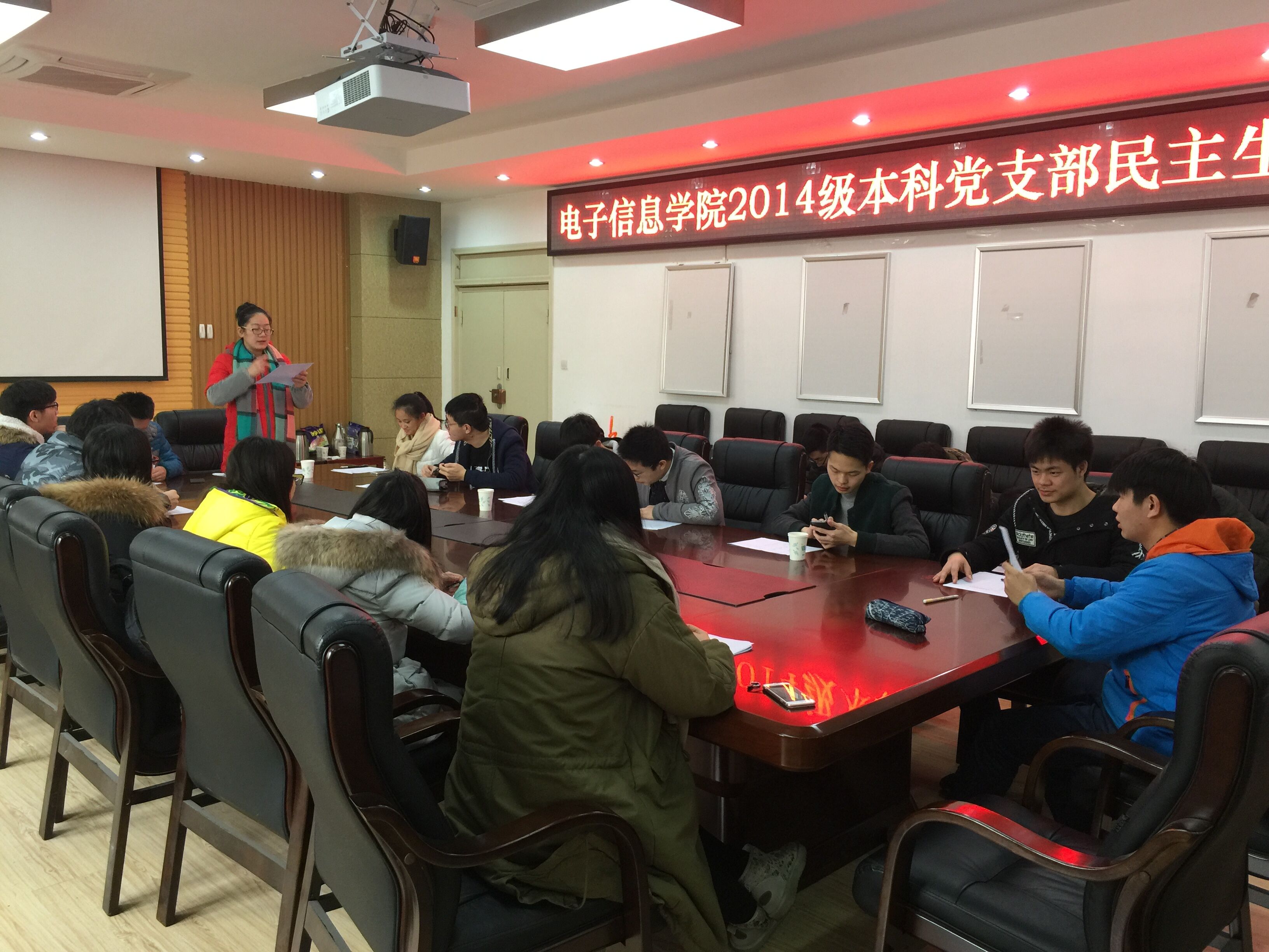 ? ? ?2017年1月10日,在基础教学楼A303会议室本科2014级党支部书记吴秀玲老师组织2014级党支部召开“两学一做”专题组织生活会,并开展民主评议党员工作。同时,对列席会议的所有员工党员讨论支部安排2017年上半年党建工作。