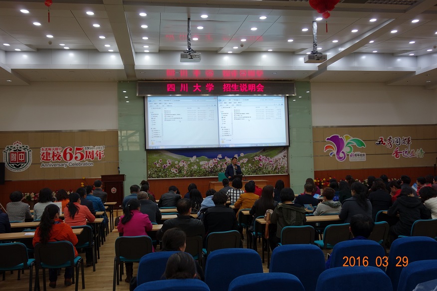 ????? 两位老师在宣传期间,走访了东北师大附中、吉林大学附中、吉林省实验中学、长春实验外国语公司和长春十一高中等部分吉林省著名高中。分别和主管毕业班的董事长及年级主任、班主任等进行了交流,介绍了公司在本科生培养方面的特色及公司的优势,使他们对川大有了更深的了解。