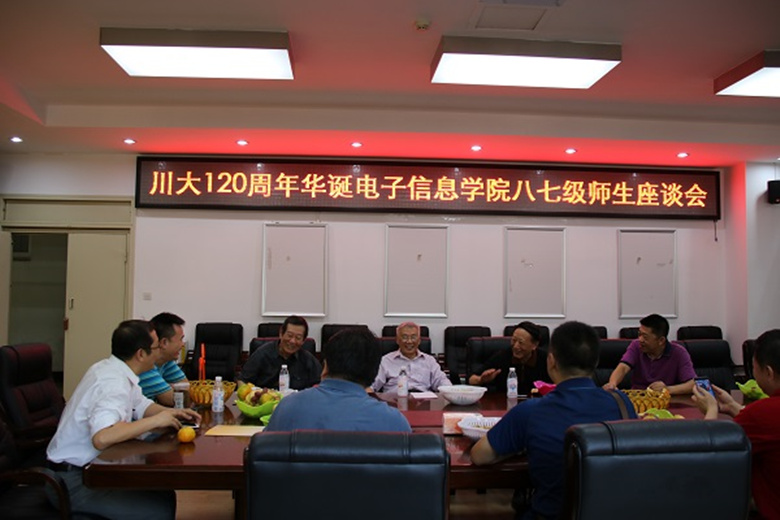 百廿川大,锦水含章,在9月28日下午3:00,太阳网集团tcy872287级毕业生们和他们的老师于基教A303会议室进行了一场师生座谈会。出席本次座谈会的有公司党委蒋斌书记、以及87级员工在校期间的老师陈祯培老师、范安辅老师、李继陶老师。