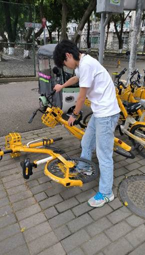 l 公共区域小组规范单车停放,捡拾白色垃圾;