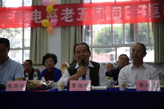在老教师代表的发言环节中,原无线电系系主任王保义老师首先进行发言,他回忆起了老五届同学的劳动过程,赞扬其优秀素质,表达了对员工的深切感情,同时代表教师群体对员工进行慰问,希望大家能树立优秀榜样,继续学习。原64级辅导员王敦平老师首先表达了对员工会举办的喜悦之情,饱含深情地回忆过去时光并表达了对诸位员工的真切祝福,希望大家都能好好生活、幸福健康。原老五届授课教师陈明俊追忆起当年无线电系的师生生活,言辞间提及221实验室等诸多往事,表示大家在数十年里共同见证了国家的繁荣发展,深情表达出对母校、党和国家的感激与热爱。